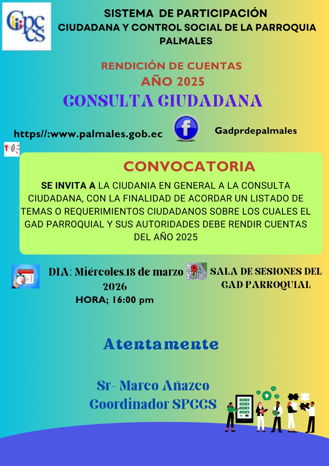 En cumplimiento y conforme lo dispone la Ley Orgánica de Participación Ciudadana y Control Social, EL Gobierno Parroquial procederá a la “RENDICIÓN DE CUENTAS” correspondiente al periodo 1 enero – 31 diciembre 2025.